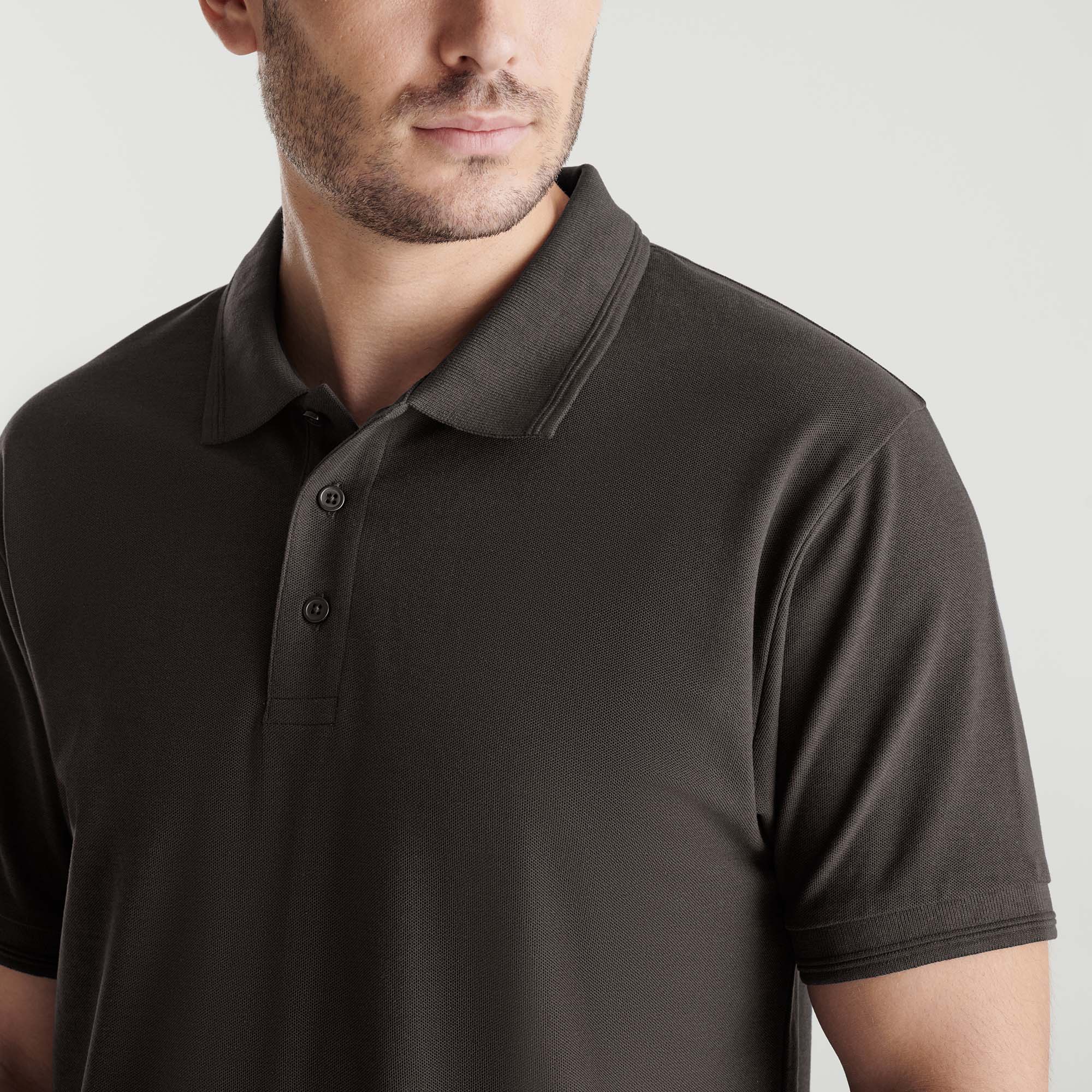Κοντομάνικο μπλουζάκι πόλο με ριμπ γιακά και μανίκια διασφαλίζει την προσαρμοστικότητα στο σώμα.